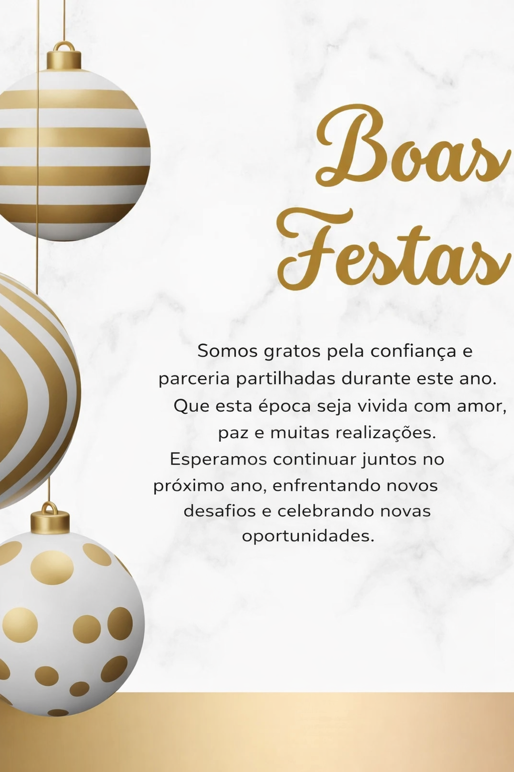 Boas Festas!Somos gratos pela confiança e parceria partilhadas durante este ano. Que esta época vivida com amor, paz e muitas realizações. Esperemos continuar juntos no ... |